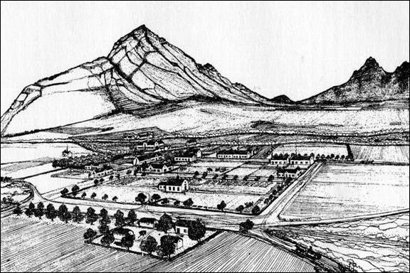 die jaar 1710 / Panorama of the town Stellenbosch in the year 1710