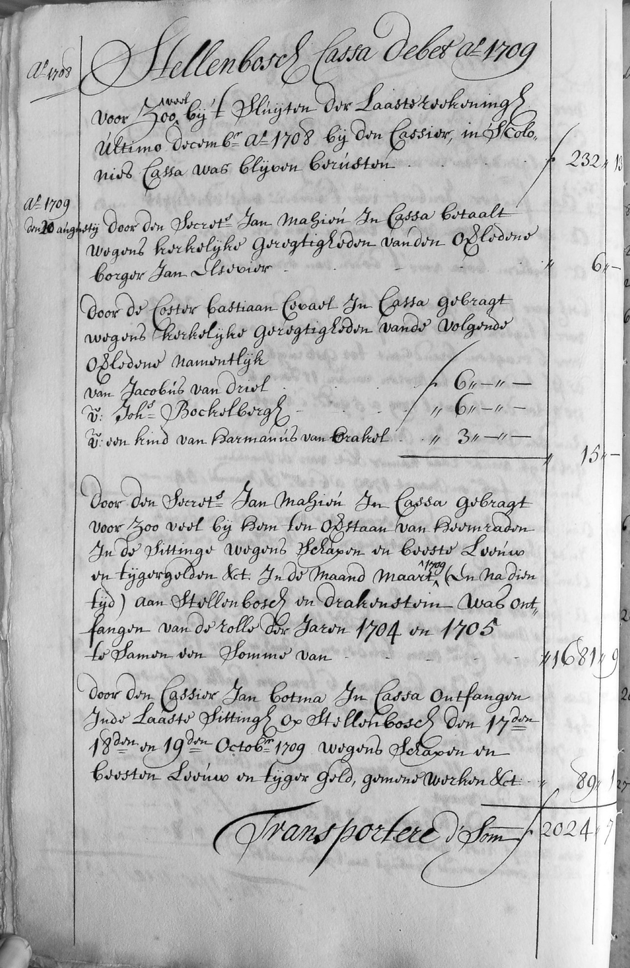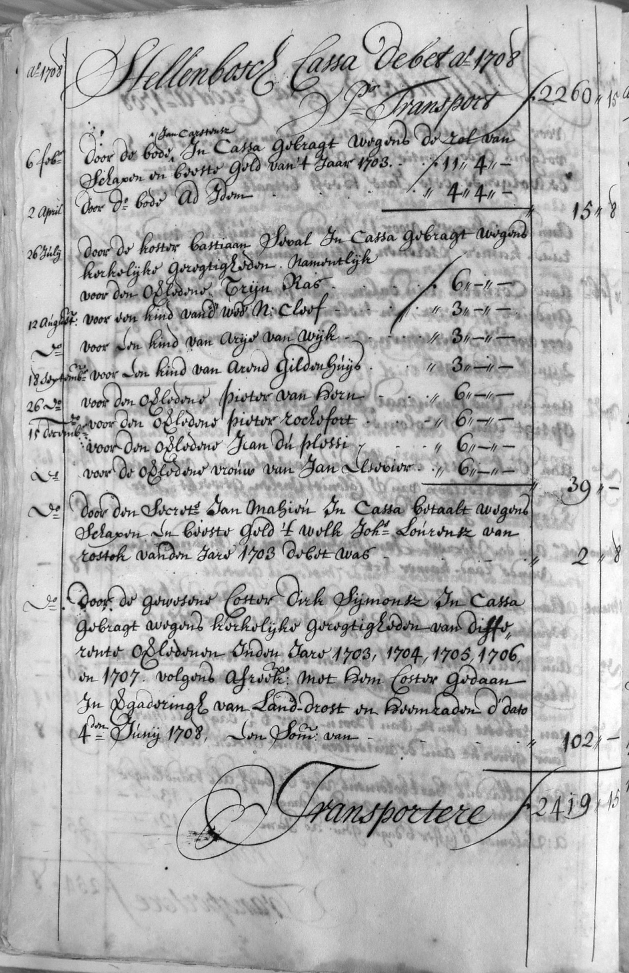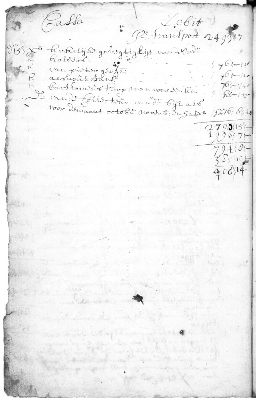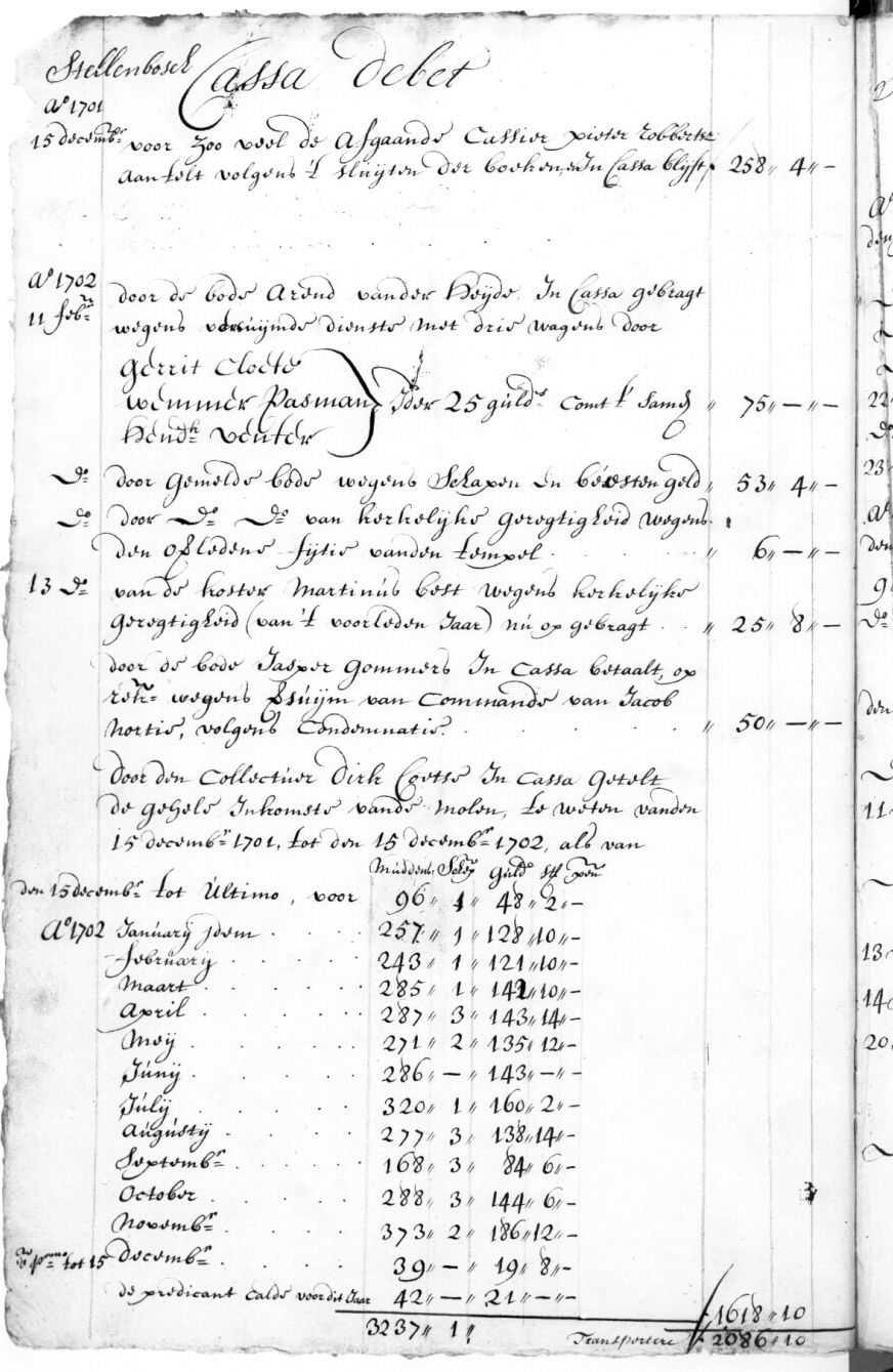 Hieronder verskyn uittreksels uit die vroegste kasboeke waarin