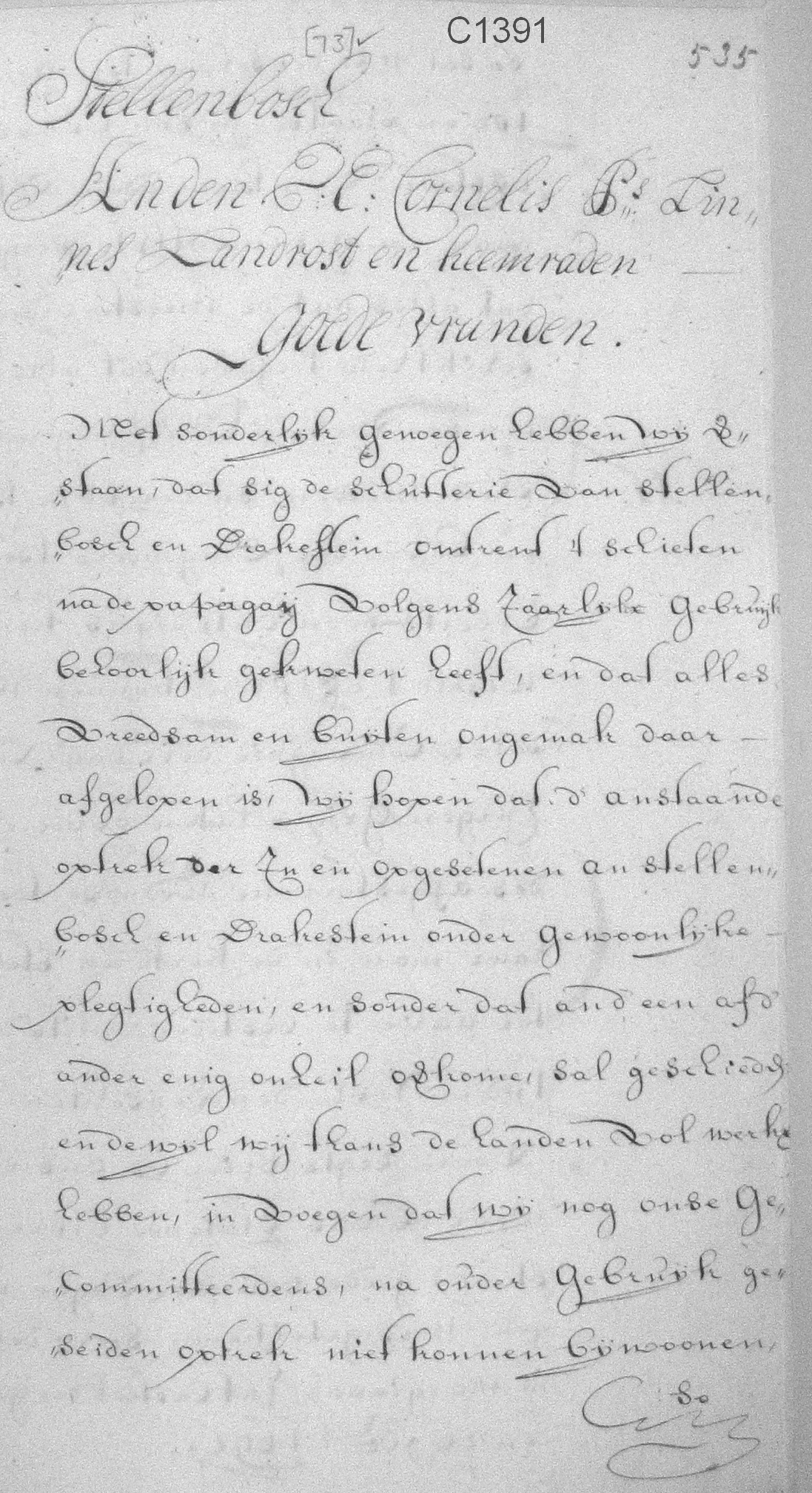 In 'n brief van Simon van der Stel aan die Landdros en Heemrade van