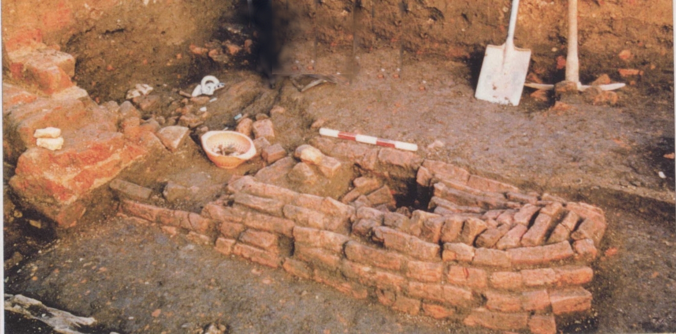 oorblyfsels in die fondamente van die kerkie wat in 1710 afgebrand het, soos dit