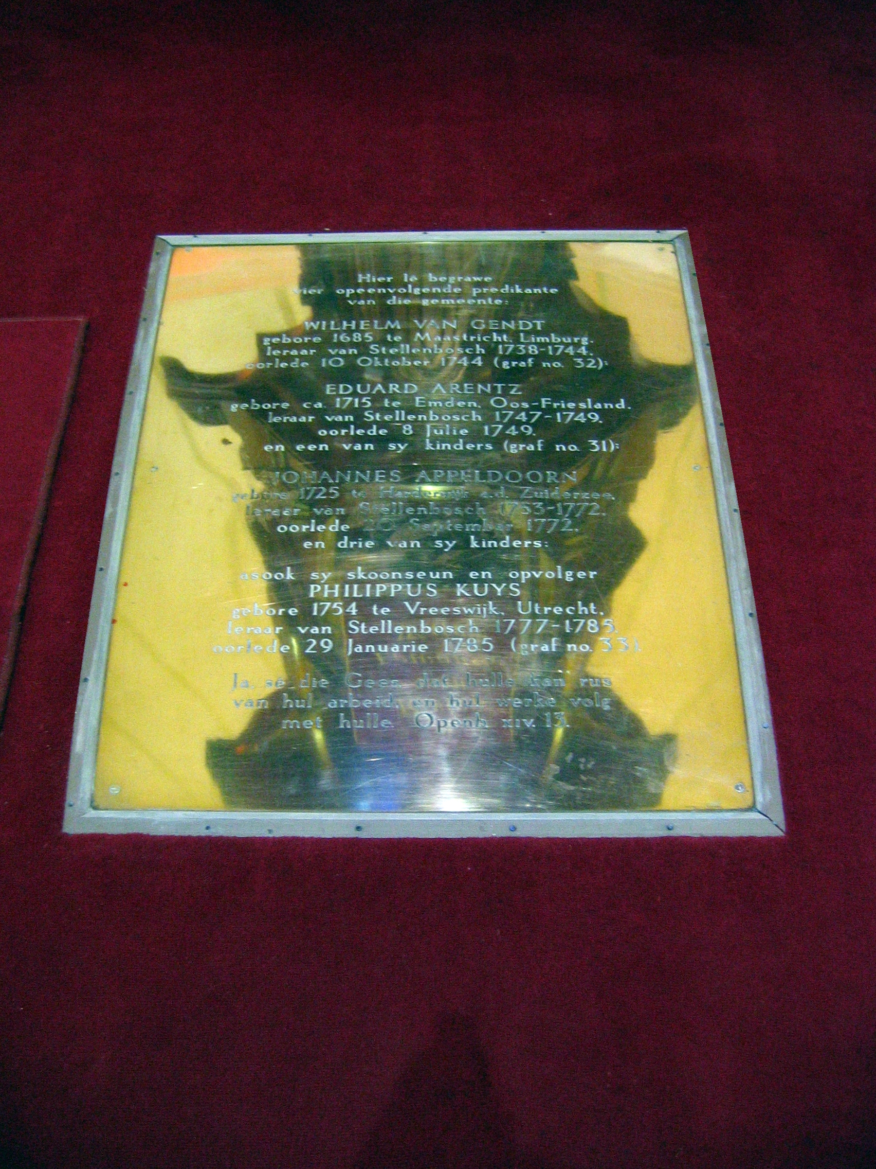 In die boek “Die Kerk van Stellenbosch” verwys die skrywers na drie predikantgrafte langs mekaar in die kerk, nommers 31, 32 en 33.